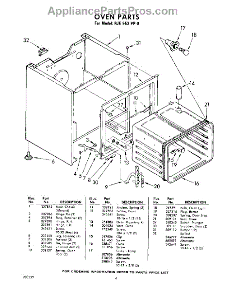 Parts for Whirlpool RJE953PP0: 04 - Oven Parts