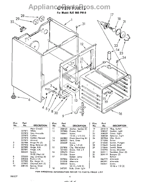 Parts for Whirlpool RJE960PW0: 04 - Oven Parts
