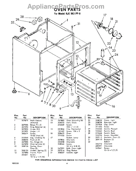 Parts for Whirlpool RJE963PP0: 04 - Oven Parts