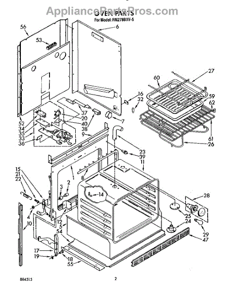 Causes of damage to the Oven Bake Element can include normal wear and tear from regular use, a buildup of food debris causing hot spots and potential burns out, or electrical issues leading to shorts or surges that damage the element.