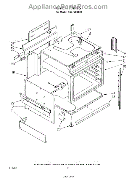 Parts for Whirlpool RS575PXR0: 02 - Oven Parts