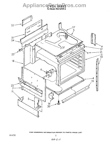 Parts for Whirlpool RS575PXR3: 02 - Oven Parts