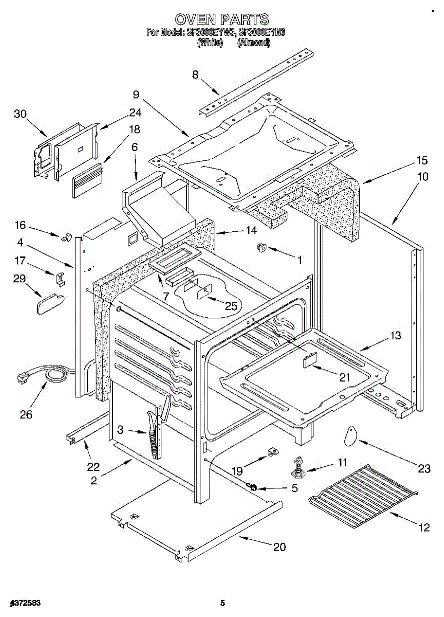 Parts for Whirlpool SF3000EYN3: 04 - Oven Parts