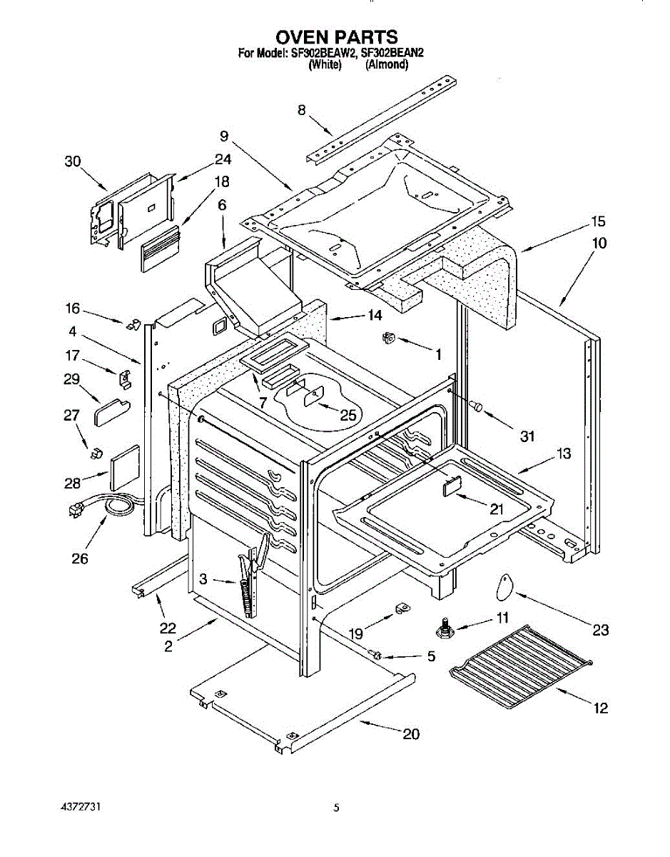 Parts for Whirlpool SF302BEAN2: 04 - Oven Parts