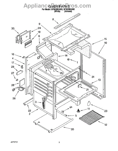 Parts for Whirlpool SF302BEAW2: 04 - Oven Parts