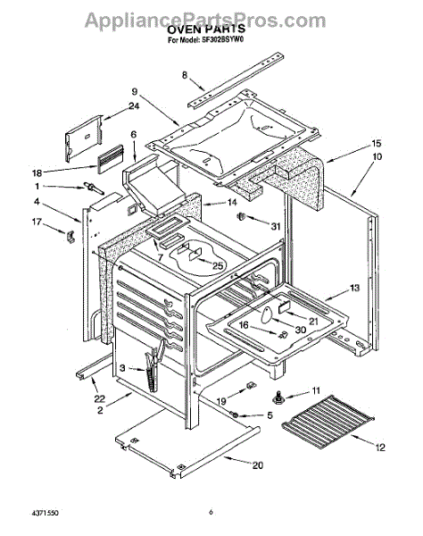 Parts for Whirlpool SF302BSYW0: 05 - Oven Parts