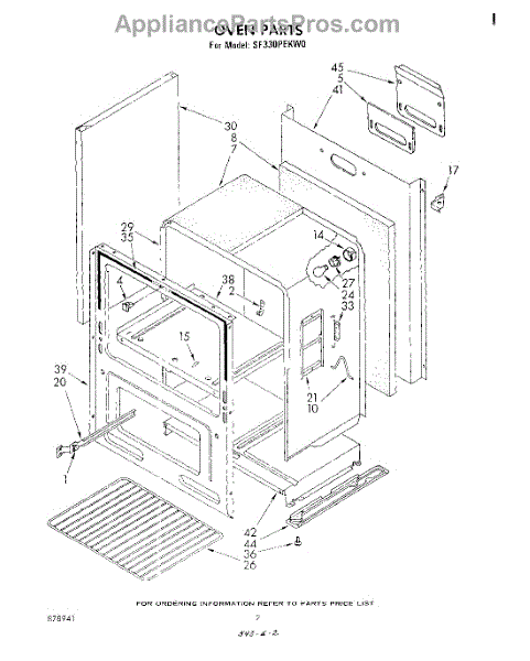 Parts for Whirlpool SF330PEKW0: 02 - Oven , Literature Parts