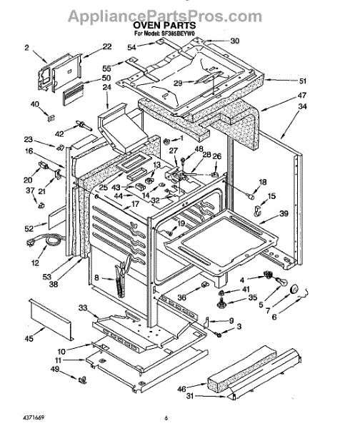 Parts for Whirlpool SF365BEYW0: 06 - Oven Parts