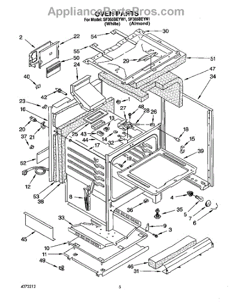 Parts for Whirlpool SF365BEYW1: 05 - Oven Parts
