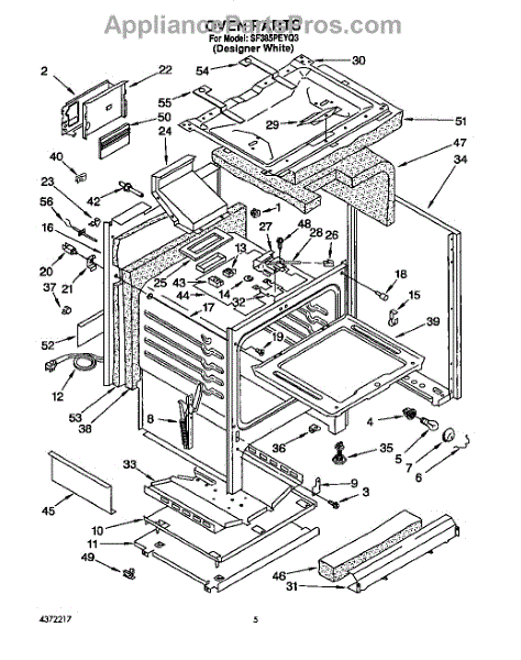 Parts for Whirlpool SF385PEYQ3: 05 - Oven Parts