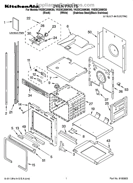 Parts for Whirlpool YKEBC208KB0: 01 - Oven Parts