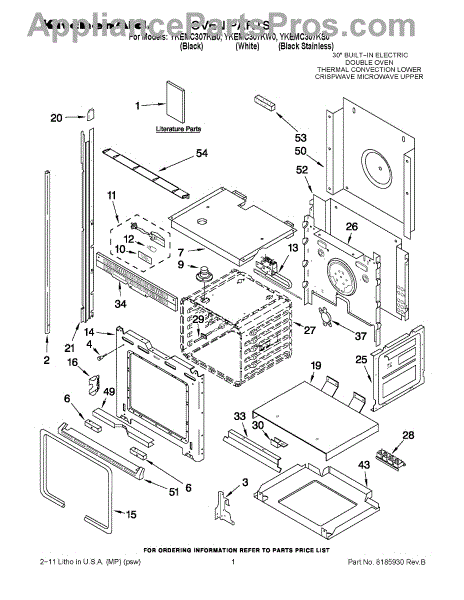 Parts for Whirlpool YKEMC307KS0: 01 - Oven Parts
