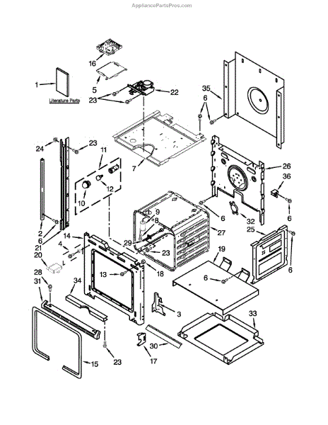 This replacement back cover restores the appliance's rear housing to protect internal components from debris and accidental contact. It keeps wiring and controls enclosed and helps maintain proper airflow behind the unit. What it does: