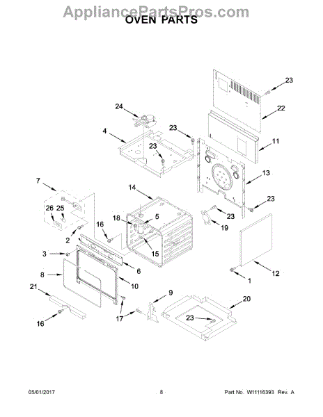 This is the top oven cavity used on compatible Whirlpool double-oven ranges. It restores the upper cooking chamber so dishes cook evenly and the oven door and components mount correctly. What it does