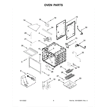 This oven bottom pan replaces the removable bottom tray that catches spills and protects the oven floor, restoring an even surface for cooking and easier cleanup. Fits in the lower cavity under the oven racks. What it does: