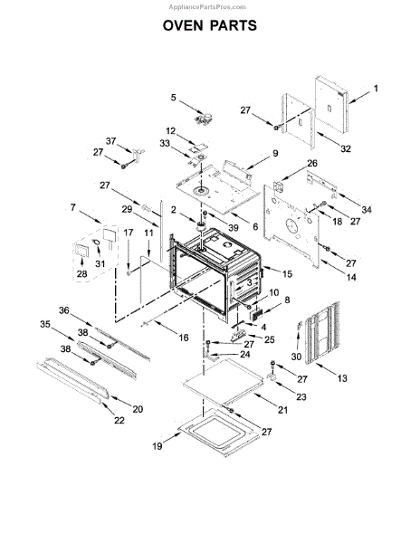 This bottom vent assembly mounts at the lower front of the oven and channels hot air out of the cavity. Replacing a damaged or missing vent helps maintain proper airflow and a clean, finished appearance.