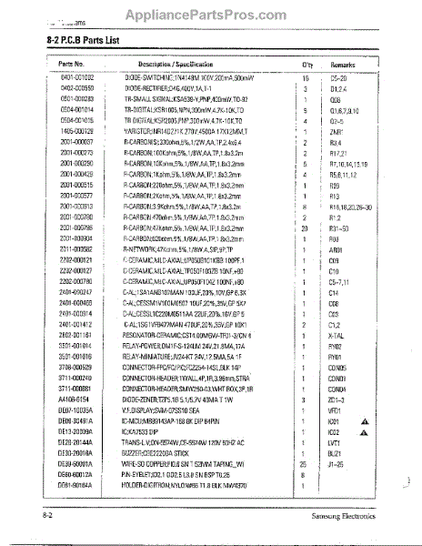 Parts for Samsung MW6471G/XAA: Oven Pcb Diagram Page 2 Parts