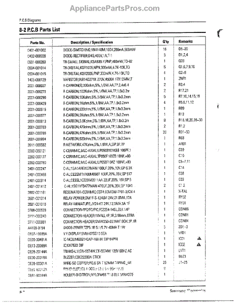 Parts for Samsung MW6580W/XAA: Oven Pcb Parts