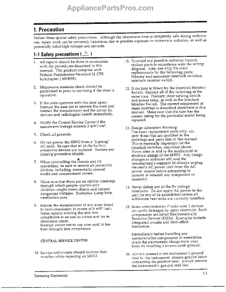 Parts for Samsung MW8490W/XAA: Oven Precautions Page 2 Parts