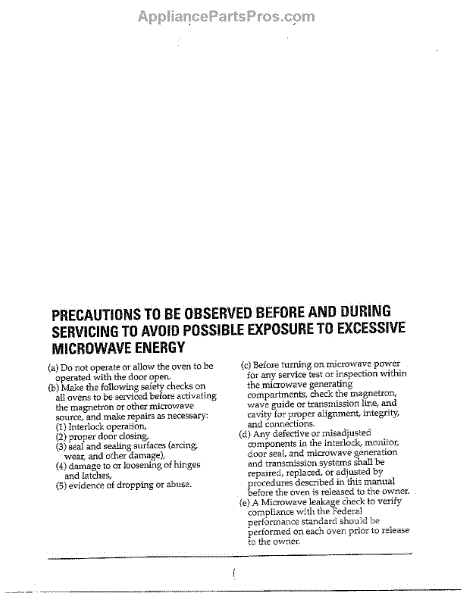 Parts for Samsung MW5580W/XAA: Oven Precautions Parts