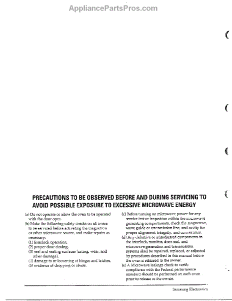 Parts for Samsung MW6470W/XAA: Oven Precautions Parts