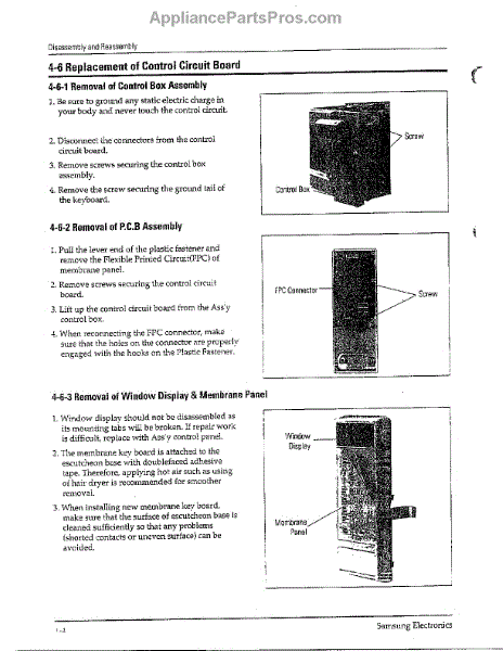 Parts for Samsung MW6580W/XAA: Oven Replacement Of Control Circuit Board Parts