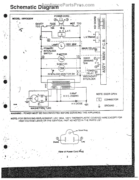 Parts for Samsung MW3530W/XAA: Oven Schematic Diagram Parts