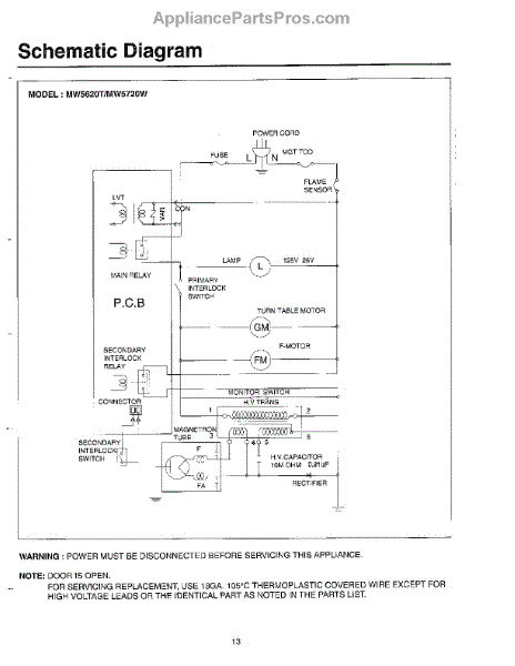 Parts for Samsung MW5720W/XAA: Oven Schematic Diagram Parts