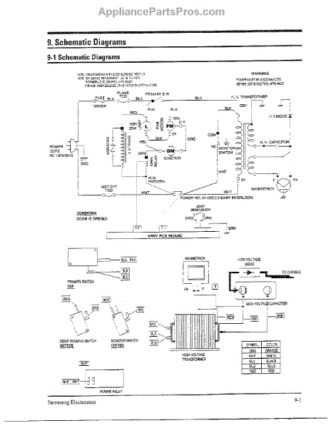 Parts for Samsung MW8490W/XAA: Oven Schematic Diagrams Parts