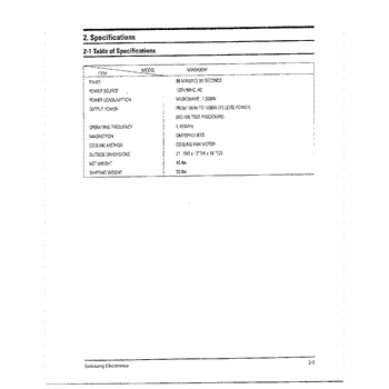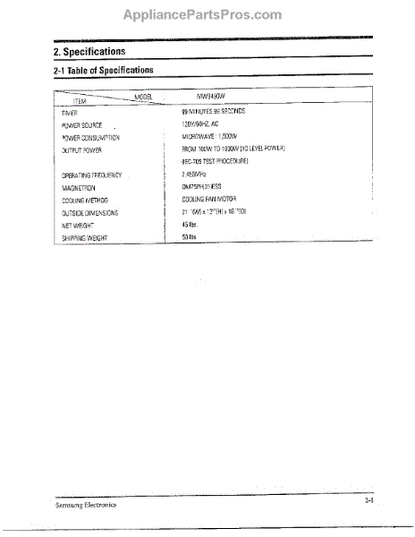 Parts for Samsung MW8490W/XAA: Oven Specifications Parts