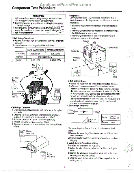 Parts for Samsung MW5351G/XAA: Oven Test Procedures Parts