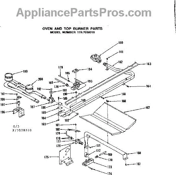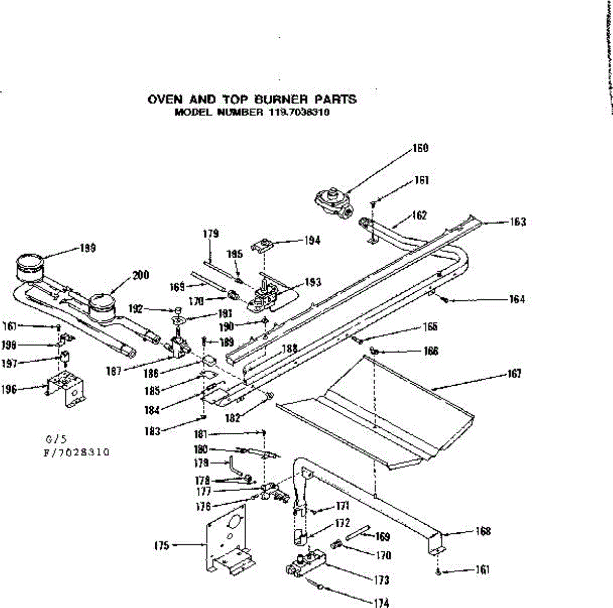 Parts for Kenmore 119.7028310 (1197028310, 119 7028310): Oven And Top Burner Parts