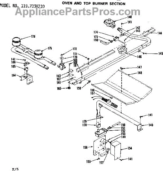 Parts for Kenmore 119.7038210 (1197038210, 119 7038210): Oven And Top Burner Section Parts