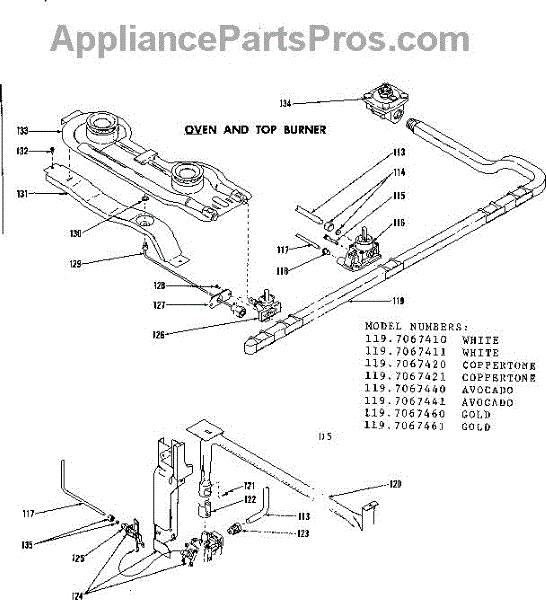 Parts for Kenmore 119.7067421 (1197067421, 119 7067421): Oven And Top Burner Parts