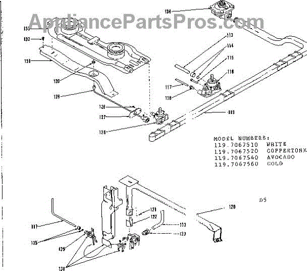 Parts for Kenmore 119.7067560 (1197067560, 119 7067560): Oven And Top Burner Parts