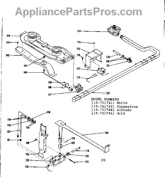 Parts for Kenmore 119.7217441 (1197217441, 119 7217441): Oven And Top Burner Section Parts
