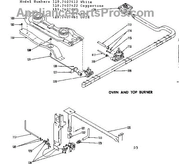 Parts for Kenmore 119.7407442 (1197407442, 119 7407442): Oven And Top Burner Parts