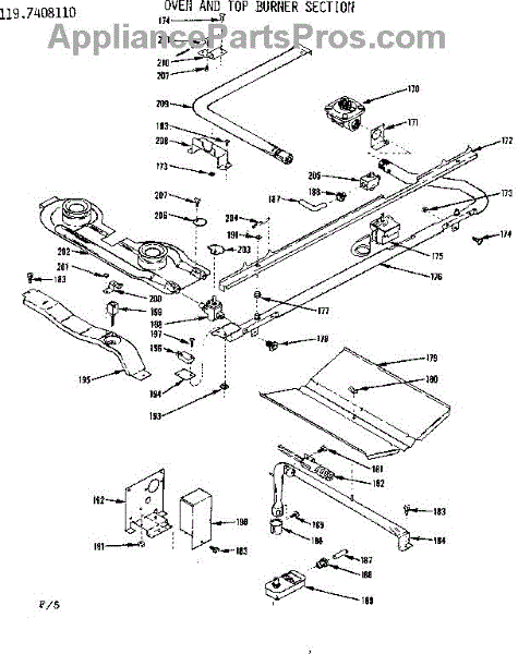 Parts for Kenmore 119.7408110 (1197408110, 119 7408110): Oven And Top Burner Section Parts