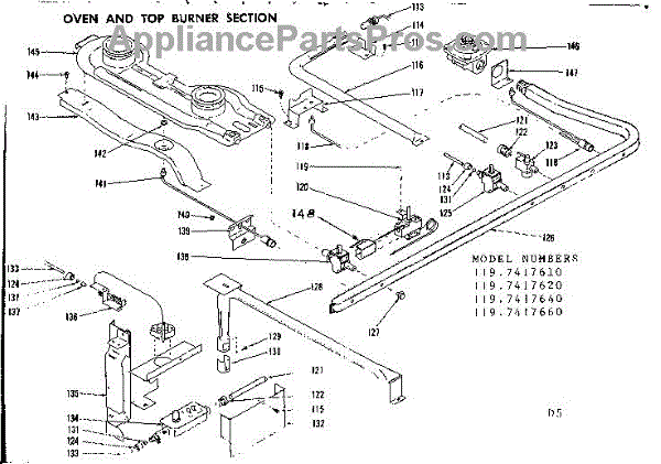 Parts for Kenmore 119.7417610 (1197417610, 119 7417610): Oven And Top Burner Section Parts