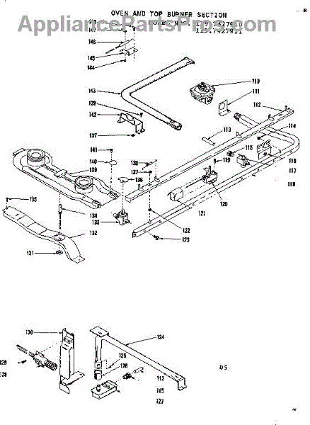 Parts for Kenmore 119.7427910 (1197427910, 119 7427910): Oven And Top Burner Section Parts