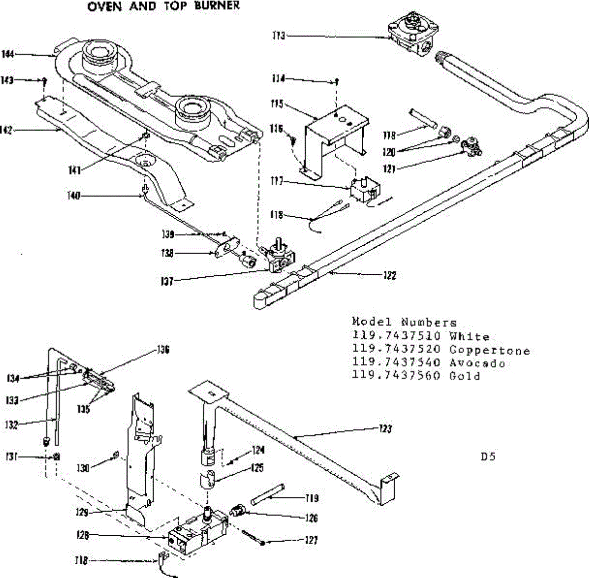 Parts for Kenmore 119.7437520 (1197437520, 119 7437520): Oven And Top Burner Section Parts