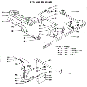 Parts for Kenmore 119.7457560 (1197457560, 119 7457560): Oven And Top Burner Parts