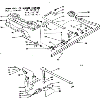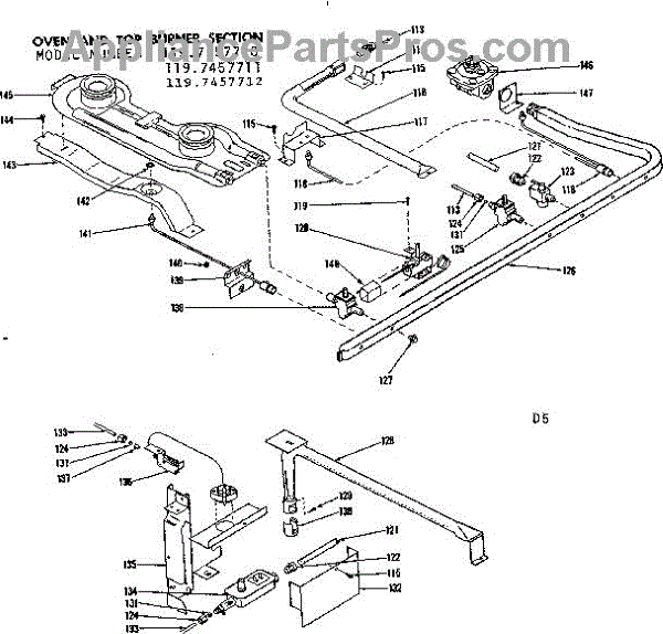 Parts for Kenmore 119.7457712 (1197457712, 119 7457712): Oven And Top Burner Section Parts