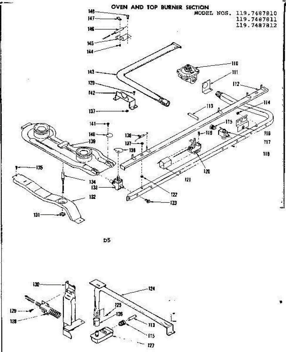 Parts for Kenmore 119.7487811 (1197487811, 119 7487811): Oven And Top Burner Section Parts