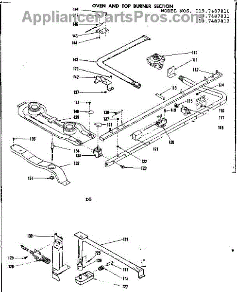 Parts for Kenmore 119.7487812 (1197487812, 119 7487812): Oven And Top Burner Section Parts