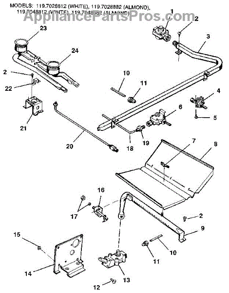 Parts for Kenmore 119.7078883 (1197078883, 119 7078883): Oven And Top Burners Parts