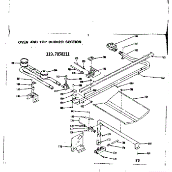 Parts for Kenmore 119.7038211 (1197038211, 119 7038211): Oven And Top Burners Section Parts
