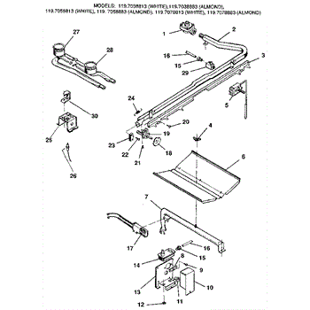 Parts for Kenmore 119.7058813 (1197058813, 119 7058813): Oven And Top Burners Parts