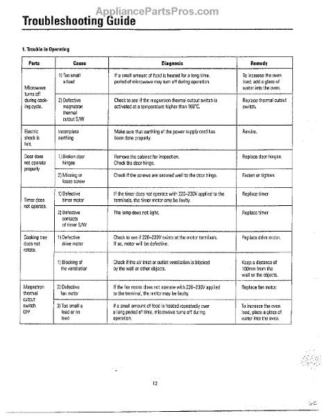 Parts for Samsung MU3050W/XAA: Oven Troubleshooting Guide Page 2 Parts