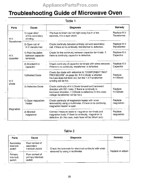 Parts for Samsung MW5720W/XAA: Oven Troubleshooting Guide Parts